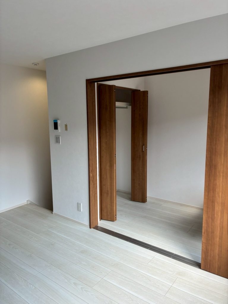 居室には、光を柔らかく通す大きな窓と、空間を緩やかに仕切るスライドドアを採用しました。