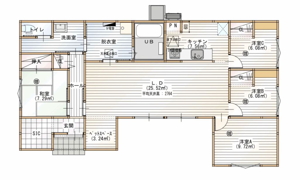 25畳を超える広々としたL-Dは、どこにいても家族の気配を感じられる、この家の心臓部です。